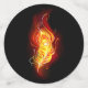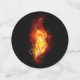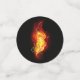 Helle Pfauenfeder aus Feuer und Flamme auf schwarzem Hintergrund.