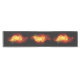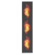 Helle Pfauenfeder aus Feuer und Flamme auf schwarzem Hintergrund.