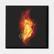 Helle Pfauenfeder aus Feuer und Flamme auf schwarzem Hintergrund.