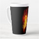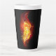 Helle Pfauenfeder aus Feuer und Flamme auf schwarzem Hintergrund.