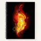 Helle Pfauenfeder aus Feuer und Flamme auf schwarzem Hintergrund.