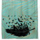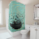 Gold und aquamarin grüne Feder von. Vögel, Krähen oder Ravens duschen den Vorhang. Aquamarine grüne Farbkombination von Geboten im Flug. Sie können Ihre Farben und Stil anpassen, um Ihren Anzug der Vorhänge des Badezimmers schmecken. Schöne Vögel für die Liebhaber von Krähen, Raben und schwarzen Vögeln in Fantasie.