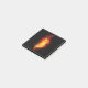 Helle Pfauenfeder aus Feuer und Flamme auf schwarzem Hintergrund.