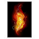 Helle Pfauenfeder aus Feuer und Flamme auf schwarzem Hintergrund.