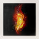 Helle Pfauenfeder aus Feuer und Flamme auf schwarzem Hintergrund.