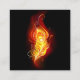 Helle Pfauenfeder aus Feuer und Flamme auf schwarzem Hintergrund.