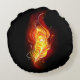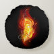 Helle Pfauenfeder aus Feuer und Flamme auf schwarzem Hintergrund.