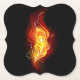 Helle Pfauenfeder aus Feuer und Flamme auf schwarzem Hintergrund.