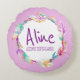 Wasserfarbene Stammesfeder und Perlen kissen personalisierte Mädchen. Personalisieren Sie mit Ihrem eigenen Namen und Namen Bedeutung auf der Vorderseite des Kissens. Derzeit liest Aline Ein helles strahlendes Licht, fröhlich und einfallsreich. Hübsches dekoratives Kissen auf pastellfarbenem lila Hintergrund, das bei Bedarf gewechselt werden kann. Ideal für ein freudvolles Mädchen. © Original wasserfarbene Feder und Perlkunst und Design von Sarah Trett für www.mylittleeden.com und namense