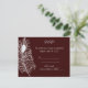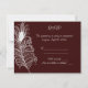 Diese RSVP-Karte koordiniert die Einladung zum Feather Wedding und verfügt über ein Set mit weißer Pfauenfeder auf schokoladenbraunem Hintergrund. Wählen Sie aus fast 200 Farben, um dieses uAwg an Ihre Hochzeitsfarben anzupassen!