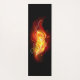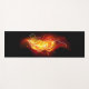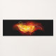Helle Pfauenfeder aus Feuer und Flamme auf schwarzem Hintergrund.