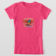 Das Design des T - Shirt zeichnet sich durch einen farbenfrohen Vogel aus, dessen Flügel sich wie im Flug weit verbreiten. Der Vogel steht auf einem Ast mit Blätter und Beeren. Der Text "Feathered Friends" ist in einem kühnen, stilisierten Schriftart über und unter dem Vogel geschrieben. Das Gesamtbild ist skurril und auffallend, mit einem Vintag inspirierten Ambiente.