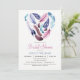 Lila, rosa, violette Federn Brautdusche Einladung. Einladende Features Federn in Form von Herz auf der Vorderseite, mit individuellem Muster auf der Rückseite.