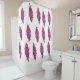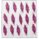 Lila und rosa Aquarellfedern auf einem Duschvorhang.