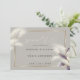 Eleganter Mushroom taupe Hintergrund mit goldenen Akzenten und Feathery Pampas Gras hat eine Touch von Farbe aus lila Anthurium-Blätter in der unteren Ecke. Moderne Skriptkalligraphie kombiniert mit einem minimalistischen, zeitgenössischen Stil Schriftart Layout schafft ein auffälliges Design. Dies ist Teil eines koordinierten Hochzeitsensemble mit passendem Hochzeitszubehör. Original-Kunstwerke von ©WhimsicalArtwork™, speziell für den BarefootBride™ entwickelt