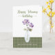 Geben Sie die Gabe der Eleganz mit dem Violett vom Februar. Diese Geburtstagskarte, die in einer Glasvase auf einem karierten, grünen grünen Tisch angeordnet ist, symbolisiert Charme und Anmut und ist ein perfekter Ausdruck der Zuneigung.