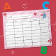 Ein niedliches Leseprotokoll für Kinder für den Monat Februar . Es zeichnet sich durch einen charmanten Elefanten und niedliche rote und rosa kleine Herzen . Die Sterne für die Bewertungen werden durch 5 Herzen ersetzt. © ArianeC Illustrations-Alle Rechte vorbehalten