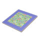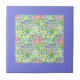 Eine hübsche Keramik mit rosa, gelben und blauen Grundierungen, mit himmelblauen Rahmen, von einem handbemalten Aquarellbild von Judy Adamson. Verwenden Sie als Wandfliese oder als Trivet.