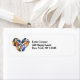 Adressetiketten mit einem Aquarelldesign aus Feder in Herzform. Die Farben sind gelb, orange, blau, grün und braun. Manche haben Streifen, Punkte, Stammesmuster und andere einzigartige kreative Gestaltungen. Set auf einem Minzgrün.