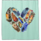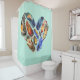 Whimsikaler Duschvorhang mit niedlicher Aquarellgestaltung von Herz aus Federn. Set auf einem Minzgrün.