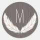 Federn + Monogramm-Aufkleber aus Stallholz Runder Aufkleber