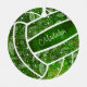 Dieses niedliche Volleyballgeschmückte Ornament zeichnet sich durch die Kontur eines einfachen, abstrakt übergroßen Volleyballs aus, mit einem zarten Doodle-Muster aus Paislien, Blume und Federn in Weiß, die alle bis auf eines der grünen, strukturierten Paneele des Volleyballs bedecken - personalisieren Sie mit ihrem Namen vorne, Jahr für Jahr - von katz_d_zynes