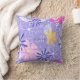 Boho Federn und doodle Blume mit Monogramm werfen Kissen mit handgezeichnet Federn, Blume und Paislien in Weiß auf einem lila Hintergrund mit farbenfrohen Hot Rosa, Orange, Pastellpink und dunkleren lila Akzent Blume - mit ihrem Namen und Monogramm - von katz_d_zynes