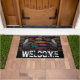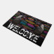 Farbenfrohe Federn und zwei Ravens Door Mat Rug. Das Bild von zwei Raben ist zu begrüßen. Wohngestaltung. Ideal für diejenigen, die Ravens, Krähen und Schwarze Liebe haben. Sie können Farbe, Größe und Stil anpassen. Mit oder ohne den hellen Federhintergrund. Tolle Geschenkidee.