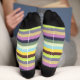 Farben für Federstreifen entworfen Socken. Kunden können Text hinzufügen, um für jede Person personalisieren zu können. Von https://www.zazzle.com/store/celestesheffey