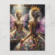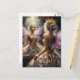 Fee in einem gepolsterten Kleid sieht in Spiegelbi Postkarte