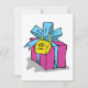 Dieses Design ist ein Geschenk, aber ein Geschenk mit einem Unterschied. Es ist eigentlich ein Geschenk, das in rosa Papier mit einem blauen Bogen eingewickelt ist. Dieses Geschenk hat aber auch ein großes Schloss auf ihm, sodass es ein verschlossenes Geschenk macht. Dieses cool verschlossene Design sieht auf diesen Einladungen gut aus