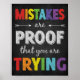 Fehler sind ein Beweis dafür, dass Sie Poster versuchen, ein wachstumsorientiertes Plakat, das perfekt für die Motivation und den inspirier Ihrer Schüler.