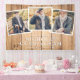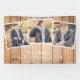 Besteht aus Serifentypografie vor einem dunklen Holzrahmen. Diese Elemente sind modern ländlich. Fügen Sie drei benutzerdefinierte Fotos hinzu.