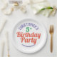 Um einen besonderen Geburtstag zu feiern. Entworfen für jemanden, der 5 Jahre alt ist. 5. Geburtstagsfeier. Geburtstagsparty. Geben Sie den Namen und die Nummer ein. Farbenfrohe Geburtstagsparty-Teller.