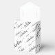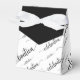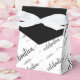 Weiße Gefälligkeitsbox mit schwarzer Feier in einem dekorativen Script-Schriftart mit Glyphe in verschiedenen Größen. Der vordere "Deckel" ist in massivem Schwarz, sodass der weiße Bogen zeigt. Diese Favoritenbox und das Design sind vielseitig und gehen für die meisten Anlässe und Themen; Geburtstag, Hochzeit, Jubiläum, Urlaub und mehr. Das klassische Design in einfarbigen Farben macht es elegant und modern.