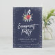 Ein schönes Winterverlobungsfest mit marinösem Hintergrund, eine frostige Schneeflocke-Grenze und Besteck-Design mit Winterfloralen und Blattwerk. Einfache Bearbeitung mit eigenen Informationen. Weitere zu koordinierende Artikel sind in unserem Shop erhältlich.