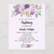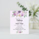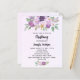 Ein violetter, lavendigerer, wasserfarbener Hintergrund. Die Einrichtung ist mit violetten und lila Blume und Grünpflanzen sowie einem goldenen Kreuz gestaltet. Personalisieren und fügen Sie einen Namen und Empfang Details hinzu. 1 Blatt = 1 Einladung mit Druckkante bis Kante.