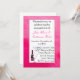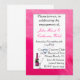 Feierliche Einladung mit rosa gefedertem Look rund um einen weißen Textbereich. Eine Flasche Champagner und Champagner-Glas mit bunten Bläschen in der links unteren Ecke. Passen Sie den Textstil, die Farbe und die Größe dieser großartigen Party Einladung an.