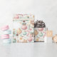 Ein reizvolles Verpackungspapier-Design präsentiert eine Vielzahl von Weihnachtsdekorationen, darunter funkelnde Baubles, Lebkuchengebäck und zauberhafte Sterne. Die sanften Pastellfarben bringen Wärme und Freude in die festliche Atmosphäre, die sich perfekt für die Geschenke während der Ferienzeit eignet.