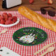 Feierliche Feier Pinguin, blinkende rote grüne Lic Pappteller