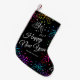 Fest gefeiertes neues Jahr Feuerwerk Kleine Weihnachtsfeier Strumpf, um das neue Jahr zu feiern. Handgeschriebene Schrift. Personalisiert das Jahr und Ihren Text.