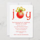 Feierliche Feiertagseinladung in Weiß, mit rotem grafischem Text, am oberen Ende, Lektüre Freude, wo das o durch einen runden roten Weihnachtsschmuck ersetzt wird. Roter Text, auf der unteren Hälfte dieser Urlaubseinladung, ist bereit, für die Feier Ihres Unternehmens zu personalisieren.