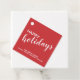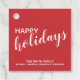 Rot und Weiß Modernes Weihnachtsgeschenk-Tag mit dem Titel "Happy Holidays" im modernen Schriftart-Stil mit dem Familiennamen in weißem, modernem Sans Serif Schriftart Stil auf rotem Hintergrund.