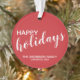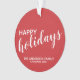 Rot und Weiß Modernes Holiday Ornament mit dem Titel "Happy Holidays" im modernen Schriftart-Stil mit dem Familiennamen in weißem, modernem Sans Serif Schriftart Stil auf rotem Hintergrund.