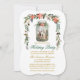 Elegante Watercolor Winter Floral Mason Jar Holiday Party Einladung umfasst Aquarelltaschen, Rosen, Pinien, Heilige Beeren, Baumwolle und botanisches Grün. Die Collage von Mason Jar umfasst eine Aquarellhirschfamilie in einem Kiefernwald. Grün zurück.