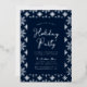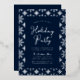 Elegante Feier Einladungen mit Ihrem Party in Silberfolie gerahmt durch ein silberfarbenes Schneeflockenmuster auf marinischem Hintergrund. Die Snowflake-Feierlichkeiten können für eine Vielzahl von Feierlichkeiten genutzt werden. Ändern Sie einfach den Ereignisnamen mit den Vorlagen.