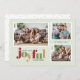 Dieses Foto Weihnachtsgrüßkarte enthält das Wort "fröhlich" in einem spielerischen Text und festlichen Farben. Das Design bietet Platz für drei Fotos auf sehr hellgrünem Hintergrund.