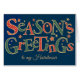 Eine stilvolle Weihnachtskarte für einen Friseur, mit "Season's Greetings" in rot-weiß und dunkelgrün-weiß Polka Dotter, in Goldeffekt auf tiefblauem Hintergrund umrissen und mit Goldeffekt und roten Sternen verstreut. Sie können die Insider-Nachricht auf diesem textbasierten digitalen Design von Judy Adamson ganz einfach ändern. Wenn Sie keine Karte für die Person finden, an die Sie gewollt haben, können Sie diese auch individuell anpassen.