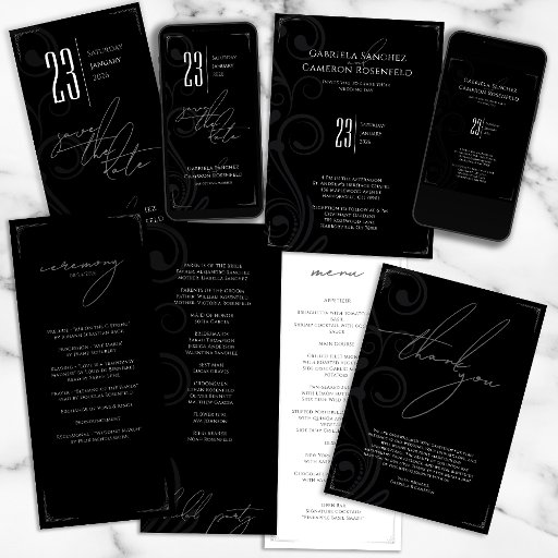 Feierliche Hochzeit in Schwarz und Weiß Programm