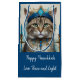 Feiern Sie das Festival der Lichter mit dieser einzigartigen und whimsical Hanukkah danke Ihnen Urlaubsgeschenk-Tasche mit einer Katze in verkleidet. Dieses Design ist perfekt für Katzenliebhaber, verbindet Spaß mit Urlaubstraditionen und macht es zu einer wunderbaren Art, in dieser Saison Ruhe, Liebe und Licht zu senden. Die trendigen aquamarinen, türkisfarbenen und blauen Farbtöne verleihen diesem zeitlosen Fest eine moderne Touch. Made with generativecintent.